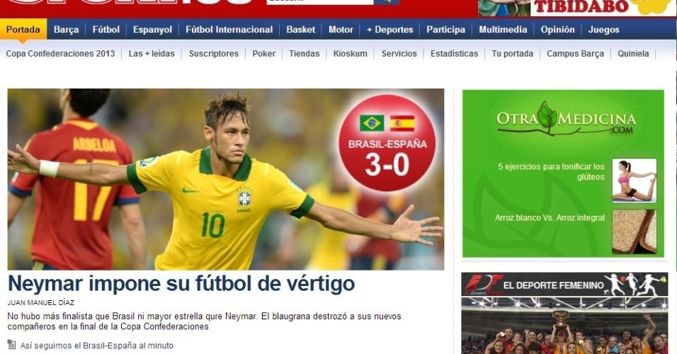 Enquanto isso, na capa do site, o Marca usou a expressão Neymarazo, fazendo referência ao Maracanazzo, quando o Brasil acabou derrotado pelo Uruguai na final da Copa de 1950. Na parte de baixo, a manchete dizia "Um inferno no Maracanã". No fim, quando o apito final ia ser dado, o consolo foi a história. "Quem ganha as Confederações, não ganha o Mundial".
